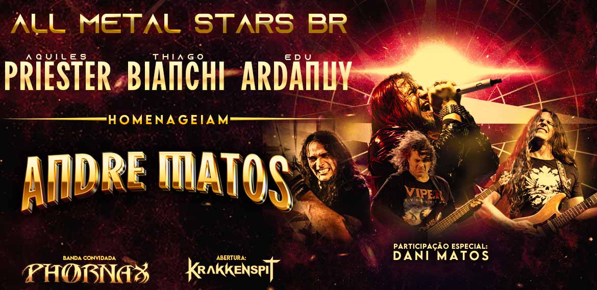 Março de 2026 marcará um momento memorável para o Heavy Metal Nacional. A inédita turnê “All Metal Stars BR” reunirá três gigantes da cena brasileira, Aquiles Priester, Thiago Bianchi e Edu Ardanuy, para homenagear o legado de Andre Matos, um dos maiores vocalistas da história da música pesada mundial.