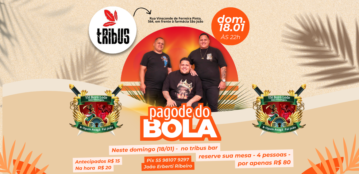 🗓️ Será dia 18 de janeiro, domingo, no Tribus Bar (Rua Visconde de Ferreira Pinto, 565, Itararé, em frente a farmácia São João).